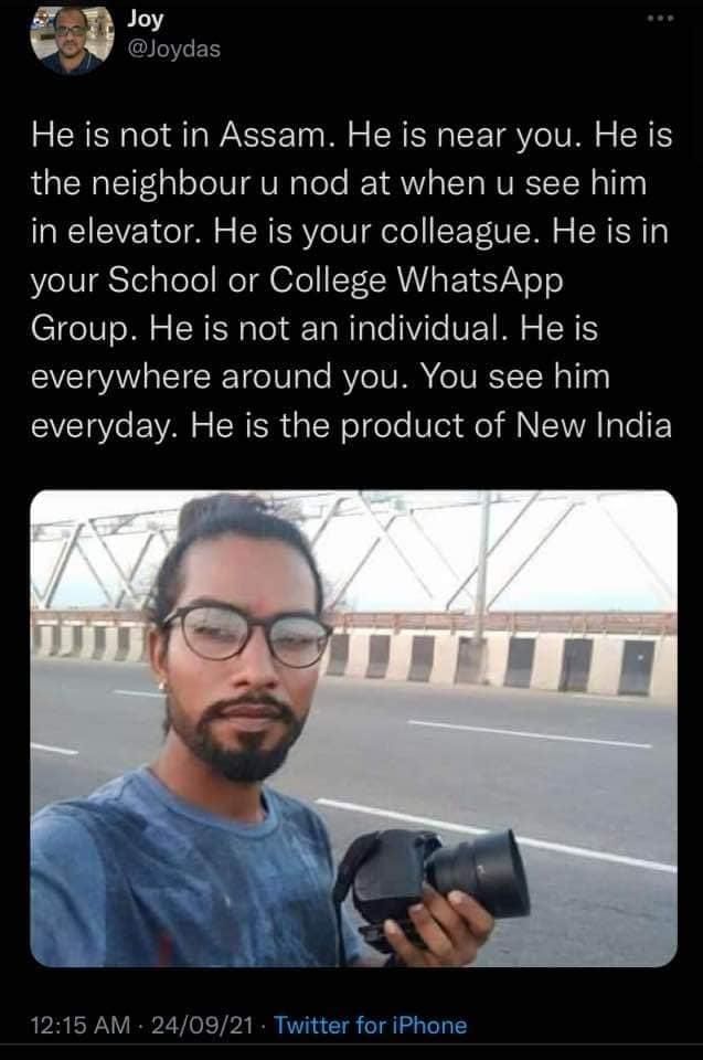 ഇത്തവണ ഐ മാഗസിനു വേണ്ടി ഒരു ചെറിയ ലേഖനം വേണം എന്ന് അർജുനും സമീറും ആവശ്യപ്പെട്ടപ്പോൾ ആദ്യം തീരുമാനിച്ചത് അരുണാചൽ യാത്രകളെക്കുറിച്ചും അവിടുത്തെ പ്രകൃതി ഭംഗിയെക്കുറിച്ചുമൊക്കെ എഴുതാൻ ശ്രമിക്കാം എന്നാണ്. എഴുതാനിരുന്നപ്പോഴാണ് ആസാമിലെ ദറാങ്ങ് ജില്ലയിൽ നടന്ന ക്രൂരമായ നരനായാട്ടിനെക്കുറിച്ച് വാർത്തകൾ വന്നത്. ദർശനയുടെ അഭിമാനമായ ഐ മാഗസിനിൽ ഒരു ലേഖനം വരിക എന്നതു തന്നെ വലിയ ഒരു സൗഭാഗ്യമാണ്. ആസാം വിഷയത്തിൽ ഈ വേദിയിൽ പ്രതികരിക്കണം എന്ന് തോന്നിയതിനാൽ കുറച്ചു കാര്യങ്ങൾ എഴുതുന്നു..