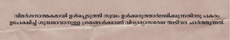 പുതിയ വിദ്യാഭ്യാസരേഖയില് ഒരു പ്രത്യേക പ്രാചീനകാലത്തിന്റെ സങ്കുചിത പ്രതാപവിവരണമുണ്ട്. പക്ഷേ അതില് ഇന്ത്യയെ ഇന്ത്യയാക്കിയ വൈവിധ്യമാര്ന്ന ചിന്താപദ്ധതികളുടെ വിരലടയാളം പോലുമില്ല. ഇന്ത്യന് ദേശീയതയെ ഇന്ത്യനാക്കിയ നാനാത്വത്തെ ന്യൂക്ലിയസ്സായി കണ്ട ഫെഡറലിസമില്ല. ആധുനിക ഇന്ത്യയെ നിര്മ്മിച്ച സാമ്രാജ്യത്വവിരുദ്ധതയില്ല. മാനവികതയെ അസാധ്യമാക്കുന്ന കമ്പോളമൗലികവാദത്തിന്നെതിരെയുള്ള ചുവടുവെപ്പുകളില്ല. മഹാത്മാഗാന്ധി പ്രാണന് നല്കി വളര്ത്തിയ മതസൗഹാര്ദ്ദ സന്ദേശമില്ല. വിദേശ സര്വ്വകലാശാലകളെ സ്വാഗതം ചെയ്യുന്ന സമീപനം സ്വീകരിക്കുമ്പോഴും പൊതുവിദ്യാലയങ്ങളെ സജീവമാക്കാനുള്ള നിര്ദ്ദേശങ്ങളില്ല. സംസ്കൃതത്തിന് ഒരു ഭാഷയെന്ന നിലയിലുള്ളതിനപ്പുറം പ്രാധാന്യം നല്കുമ്പോള്, ഉറുദു, അറബി, ചൈനീസ് എന്നിവക്ക് പ്രാഥമികഭാഷയെന്ന നിലയിലുള്ള പരിഗണനപോലും നല്കിയിട്ടില്ല. തായ് ഭാഷ മുതല് കൊറിയന് ഭാഷയെവരെ ഉള്ക്കൊള്ളുന്ന വിദ്യാഭ്യാസരേഖ എന്തുകൊണ്ട് ചൈനീസ്, അറബി, ഉറുദു ഭാഷകളെ പൂര്ണ്ണമായി ഉപേക്ഷിച്ചു? സംസ്കൃതത്തിന് ഒരു ഭാഷക്കപ്പുറമുള്ള പ്രാധാന്യം നല്കാനുള്ള കാരണമെന്ത്? പ്രാചീന, മധ്യകാല ഇന്ത്യയില് നടന്ന ധൈഷണിക സംവാദങ്ങളെക്കുറിച്ചുള്ള പരാമര്ശങ്ങള് എന്തിന് ഒഴിവാക്കി? അറുപത്തിനാല് കലകളും യോഗയും വിദ്യാഭ്യാസരേഖയില് എങ്ങനെ കടന്നുകൂടി? ഇക്കാര്യങ്ങൾ ആഴത്തില് വിശകലനം ചെയ്താല് സംഘപരിവാറിന്റെ സാംസ്കാരിക ദേശീയത തെളിയും.